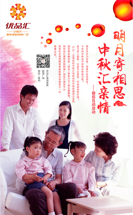中秋佳節(jié)倍思親,全家團(tuán)圓的日子里你身在哪里,心系何處?今年的中秋你怎么過(guò)?是背包行天涯,用腳步丈量人生;是獨(dú)自加班,心中牽掛家人;亦或是回老家陪伴父母?跟大家分享下你的中秋計(jì)劃吧,對(duì)家人和朋友說(shuō)出的中秋祝福。9.12—19將你的中秋計(jì)劃,回家、旅游、工作……都可以,加上你的中秋祝福語(yǔ)分享到微信朋友圈,回復(fù)“姓名+聯(lián)系方式+朋友圈截圖”到優(yōu)品匯奧特萊斯購(gòu)物廣場(chǎng)官方微信平臺(tái),即有機(jī)會(huì)獲得價(jià)值80元的高檔皮質(zhì)仿古掛鎖DIY相冊(cè)一本及親情賀卡一張,限量30名!